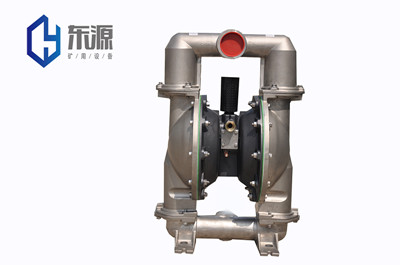 在不銹鋼隔膜泵的兩個對稱工作腔中,各裝有一塊有彈性的隔膜6,聯(lián)桿將兩塊隔膜結(jié)成一體,壓縮空氣從泵的進(jìn)氣接頭1進(jìn)入配氣閥3后,推動兩個工作腔內(nèi)的隔膜,驅(qū)使聯(lián)桿聯(lián)接的兩塊隔膜同步運(yùn)動。與此同時(shí),另一工作腔中的氣體則從隔膜的背后排出泵外。一旦到達(dá)行程終點(diǎn)。配氣機(jī)構(gòu)則自動地將壓縮空氣引入另一個工作腔,推動隔膜朝相反方向運(yùn)動,這樣就形成了兩個隔膜的同步往復(fù)運(yùn)動。每個工作腔中設(shè)置有兩個單向球閥4,隔膜的往復(fù)運(yùn)動,造成工作腔內(nèi)容積的改變,迫使兩個單向球閥交替地開啟和關(guān)閉,從而將液體連續(xù)地吸入和排出